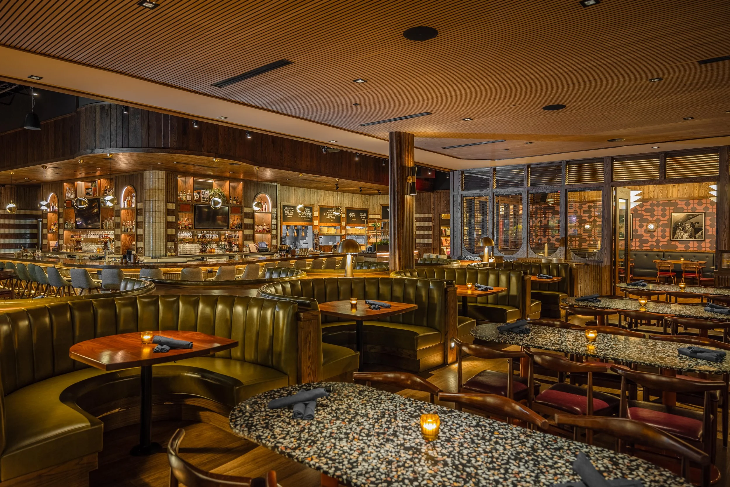 Seager & Sons is a nostalgic 70s-inspired restaurant and cocktail bar, blending vintage character with a lively, welcoming atmosphere designed for everything from casual family dinners to date nights and group gatherings around the firepit. The menu centers on hand-stretched pizza and crispy fried chicken, alongside elevated comfort dishes. A dimly lit wrap-around bar anchors the space, serving craft beers and inventive cocktails, including highballs from a custom machine, a Banana Bread Old Fashioned, and a Honey Vanilla Bean espresso martini made with locally roasted espresso.